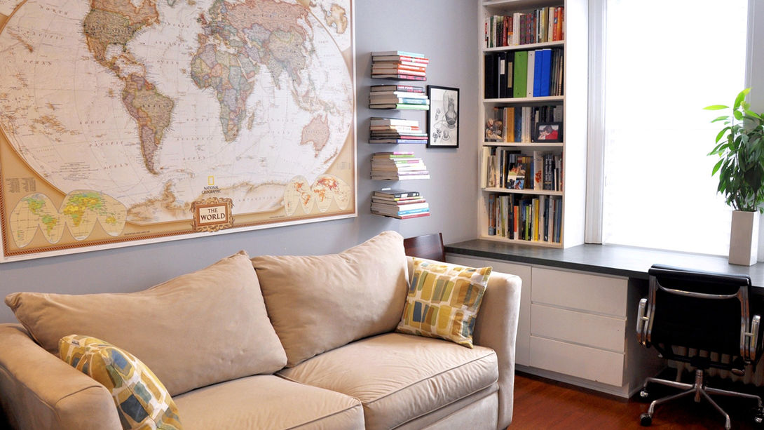 This residence was situated at the top of a hill, in a building built in 1929. As is typical of the time period, the space was compartmentalized with each room divided by thick partition walls, making it feel a bit closed off and dark. In order to modernize the space and make it feel more expansive, the walls that divided the kitchen, dining room and living room were removed allowing more daylight to filter into the space to lessen the electrical load for lighting. The bathroom was made larger by lengthening the space into the existing hallway, allowing room for a second sink and a jetted tub. The walls of the bathroom were tiled in a light-colored marble, while the back wall used a darker gray, glass tile to create the illusion of a deeper space. The entire condo was brightened by new recessed lighting with colorful pendants over the bar-height seating. A new modern fireplace surround was added to anchor the space and give it a more broad and modern feeling.